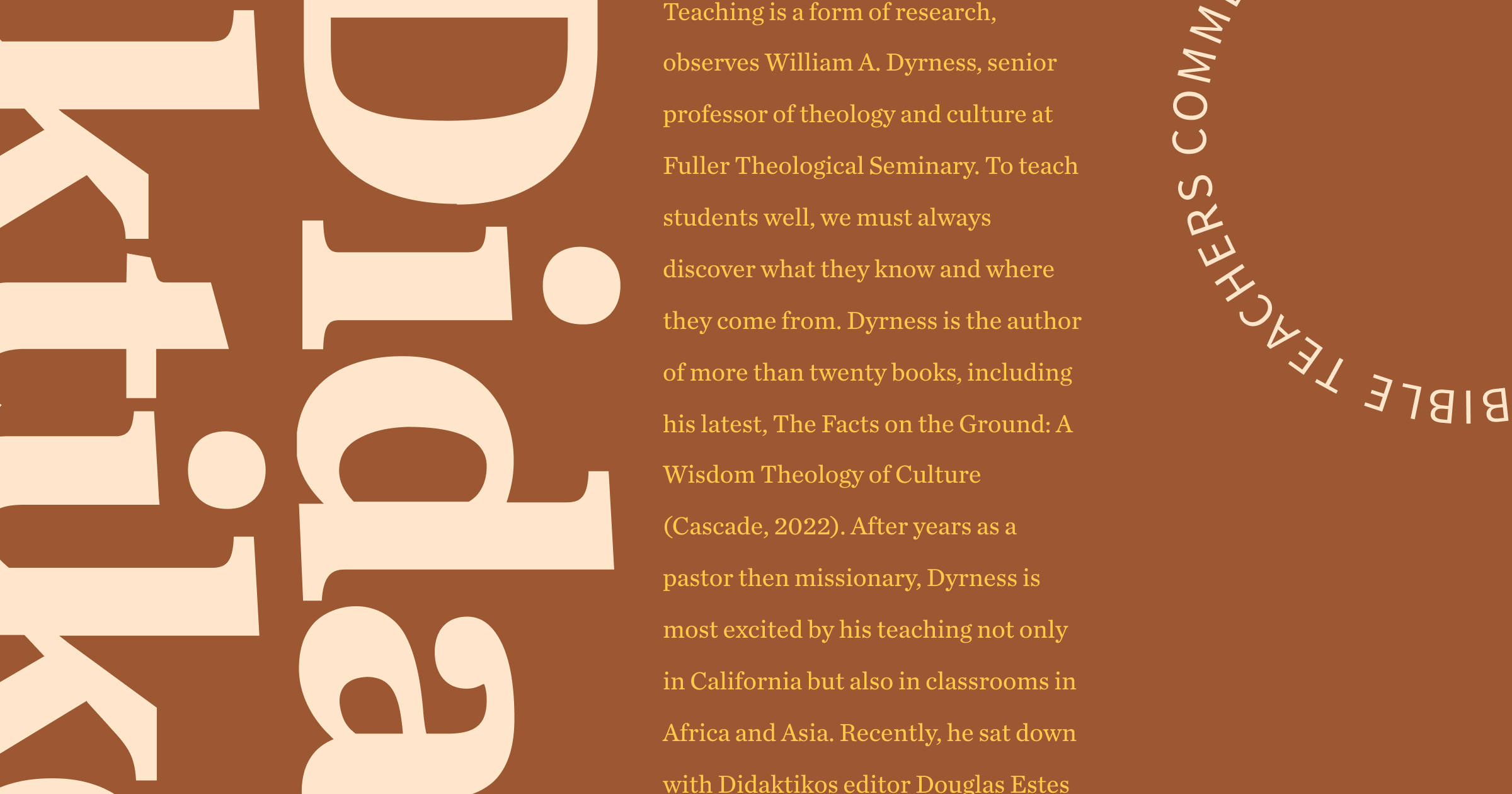 Teaching is a form of research, observes William A. Dyrness, senior professor of theology and culture at Fuller Theological Seminary. To teach students well, we must always discover what they know and where they come from. Dyrness is the author of...
