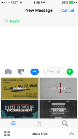 Make sure you have the latest version of Logos Bible and are running iOS 10 or later. Then open iMessage to get started.