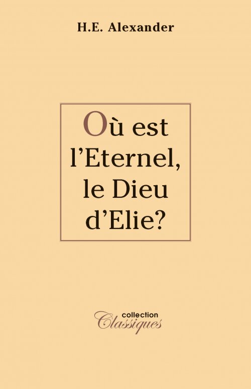 Dans cet ouvrage, H . E. .Alexander n'a pas prétendu écrire un commentaire sur la vie du prophète Elie, mais en tirer des applications pour notre temps. Où est l'Eternel, le Dieu d'Elie? peut nous convaincre que le temps est venu de nous tenir résolument non pas du côté de la majorité «religieuse», mais devant l’Eternel.