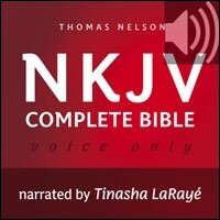 Bring the Bible into your daily activities with this single-voice version of the complete Bible in the NKJV. With clear and uncluttered narration from Tinasha LaRayé, this Bible speaks plainly and makes it easy for you to enter God’s Word. Not only is this audio Bible perfect for busy people looking to find more time to dive into the Word at work or on the go, it makes a great audio companion to Bible studies, devotionals, and quiet times.