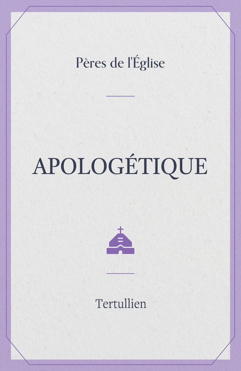 La plus importante des œuvres de Quintus Septimius Florens Tertullianus; c. 155 AD – c. 220 AD) qui défend les chrétiens injustement traités et accusés à tort. Il demande qu’il reçoive les mêmes considérations que les autres groupes religieux de l’Empire romain. C’est de cet œuvre que provient la célèbre déclaration « notre sang est une semence de chrétiens » (L.13).