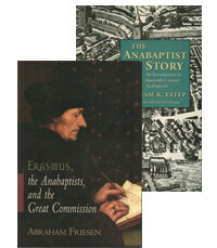 Five centuries ago the Anabaptist movement was launched with the inauguration of believer’s baptism (as opposed to infant baptism) and the formation of the first congregation of the Swiss Brethren in Zurich, Switzerland. They emphasized piety, good works, and nonviolence, and had a strong aversion to state-run churches. Although they were part of the Reformation movement, they would come to experience severe persecution not only from the Roman Catholic Church, but from their fellow Protestants. Believing that they must work out their salvation in fear and trembling, the Anabaptists attempted to commit their communal living to the teachings of the Sermon on the Mount. They emphasized peaceful living, justice making, and the voluntary sharing of goods. Judged unfairly through several centuries, misunderstood or deliberately misrepresented, ignored and, of course, persecuted, William Estep believes the Anabaptists deserve a fresh look. Abraham Friesen has used the latest research to promote the idea that Erasmus and his famous paraphrase of Christ’s Great Commission were instrumental in establishing early Anabaptist thought. Today we know the Anabaptists primarily as the Amish, Mennonites and the Church of the Brethren.