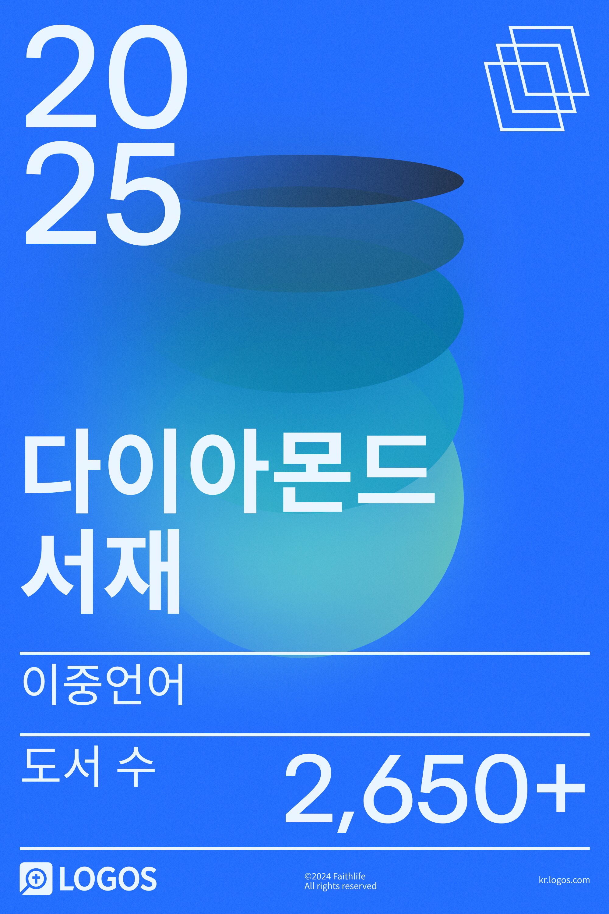 2025 이중언어 다이아몬드 서재는 강력한 성경 연구 도구에 연결되어, 더 쉽고 효율적으로 성경을 깊이 연구할 수 있도록 돕습니다. 2025 이중언어 플래티넘 서재의 모든 도서를 포함하고 있는 2025 이중언어 다이아몬드 서재는 NICOT & NICNT 주석 시리즈 (16권), Lexham 리서치 주석 세트 (14권), Hermeneia: A Critical and Historical Commentary on the Bible | HERM (55 vols.), A Greek–English Lexicon of the New Testament and Other Early Christian Literature, 3rd ed. (BDAG), Exegetical Guide to the Greek New Testament | EGGNT (14 vols.) 등의 핵심 자료를 추가하여, 더욱 풍성한 서재를 제공합니다.
