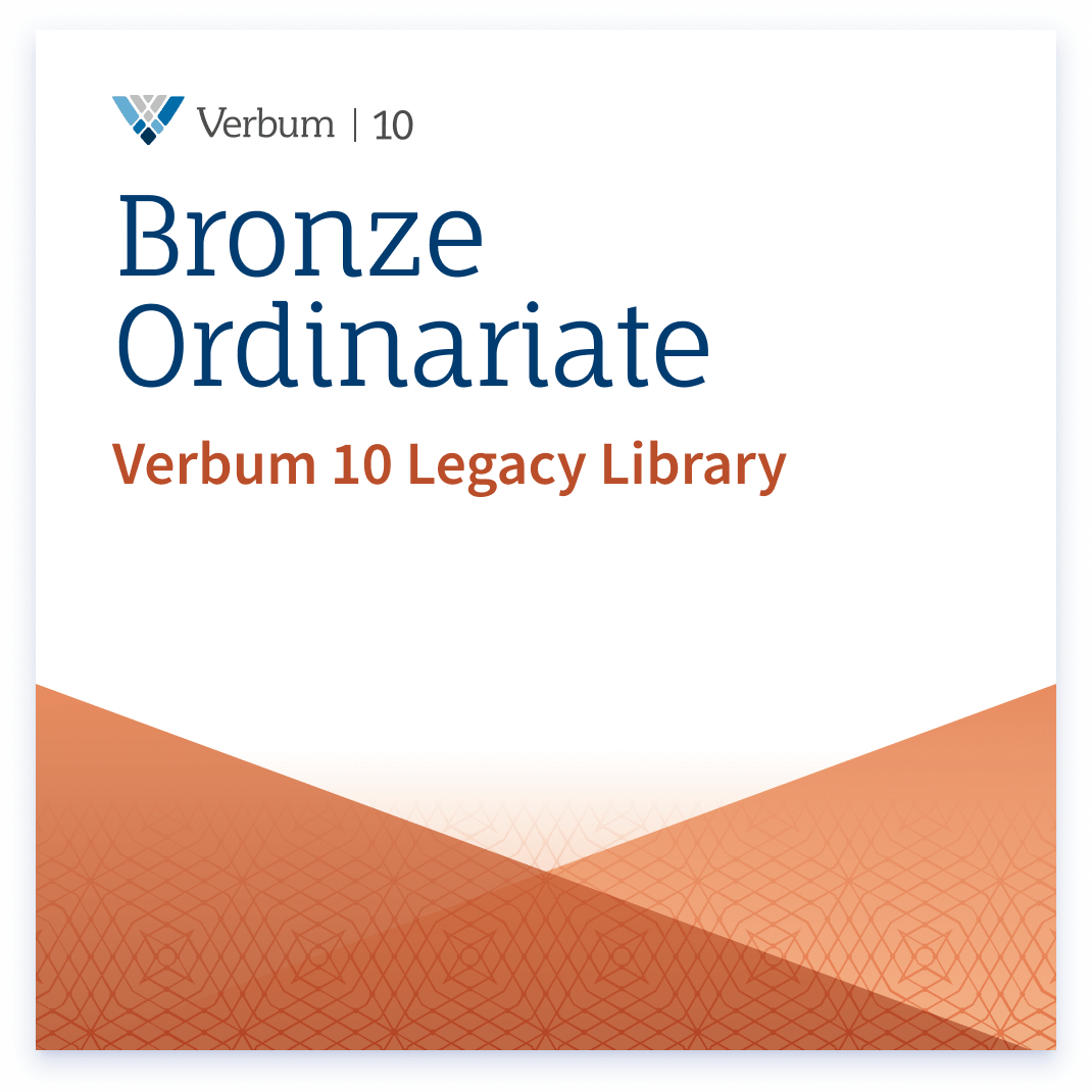 The Verbum 10 Ordinariate Legacy Libraries reintroduce the classic libraries of Verbum 10. This library is offered without features and datasets, making it the perfect standalone collection of resources to help grow your library with study Bible notes, Bible dictionaries, devotionals, and a few key commentaries. The Verbum 10 Ordinariate Bronze Legacy Library provides essential resources for anyone just getting started with serious Bible study.