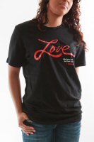Made with 100% cotton, this Faithlife T-shirt allows you to share your faith in comfort and style. Featuring a double-needle hem, coverseamed neck, and striking red-on-black design, this shirt pulls attention to 1 John 4:19—“We love because he first loved us.” Shirts are available in sizes S–XL.
