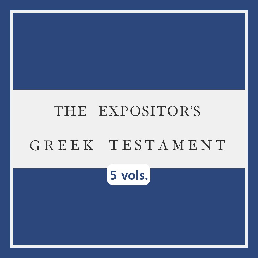 The 5-volume Expositor’s Greek Testament ranks among the most important commentaries on the Greek text of the New Testament from the 19th century, drawing from the scholarship of twenty contributors under the editorship of William Robertson Nicoll. In addition to the Greek text, this massive reference work contains textual, literary, and grammatical commentary on nearly every Greek word in the entire New Testament. The Expositor’s Greek Testament also includes lengthy introductions to each of the books in the New Testament, surveying the literary and interpretive history, along with an introduction to the historical context of each book and an extensive bibliography.