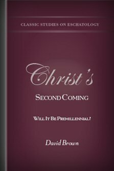 In Christ’s Second Coming, Brown defines premillennialism as a theory that advocates that Christ will soon come, not to carry on in person and in power the work of converting and saving men, but to close the dispensation of grace and introduce an eternal state of retribution. Instead, Brown advocates the theory that there will be—before Christ’s coming—an estimated thousand years when the Gospel will spread in power among men, and grace will be victorious over the whole earth.
