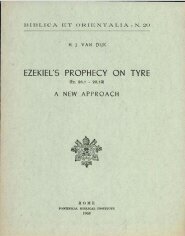 In an attempt to clear up the manifold obscurities and problems with the text of Ezekiel’s Prophecy on Tyre, commentators have mainly resorted to two devices. The first is excessive emendation or interpretation of the Hebrew text on the basis of the ancient versions and especially of the LXX. The second is a literary approach, consisting in cutting out bigger or smaller portions from the text to meet the poetical and metrical requirements favored by the commentators themselves. Fortunately, of late there have been some signs of a new, third method, based on a firm belief in the substantial reliability of the consonantal Hebrew text, and availing itself of the new material of both lexical and syntactical nature uncovered by comparative Canaanite and Semitic studies. Commentators are becoming increasingly convinced that in most cases this is the only method to obtain permanent satisfactory results.